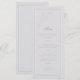 Um galho de orquídeas brancas, desenhadas à mão na tinta da China e colocadas digitalmente em camadas com um falso efeito emboscado, juntamente com uma dupla trama em camadas com o mesmo falso efeito emboscado, decoram esta elegante e sofisticada peça companheira de convite formal: o cartaz cardápio, que apresenta uma caligrafia elegante com floreados delicados. Esse cartão de cardápio clássico e moderno emboscado é perfeito para casais que preferem artigos tradicionais formais de casamento e que amam o efeito gravado.
