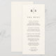 Compartilhe os detalhes do menu de recepção de casamento em estilo elegante com estes cartões de cardápio de casamento monográficos em cera de marfim quente com as suas iniciais em letras negras sérvias tradicionais, salpicadas por uma fina linha vertical. Personalize os itens de cabeçalho e menu organizados por curso.