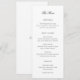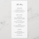 Cardápio de casamento clássico com o título em uma fonte cursiva elegante e o restante do texto em uma fonte serifada tradicional.