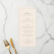 Cardápios de casamento clássicos com um design simples e atemporal com letra elegante e fontes serif tradicionais.