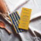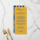 Um retrorreflector colorido, moderno, azul e amarelo, menu escrito. E as pintas amarelas e azuis desenhadas à mão no verso. Perfeito e compatível com a suíte inteira. menu janto de casamento. Que apresenta modelo de chic de fundo amarelo vintage e tipografia azul.