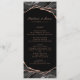 Forneça aos seus hóspedes este design de cardápio de casamento simplesmente elegante, com tons clássicos de preto, branco e cinza, com veias metálicas de folha de ouro de rosa. Personalize-o com seus nomes, data do casamento e opções de menu.