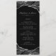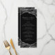 Forneça aos seus hóspedes esta design de cardápio elegante que apresenta tons clássicos de preto, branco e cinza com veias metálicas de folha prateada. Personalize-o com seus nomes, data do casamento e opções de menu.