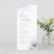 Menu Casamento com coral de aquarela azul e conchas