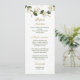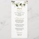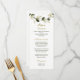 flores brancas e douradas com folhas verdes elegantes menu de casamento botânico Os detalhes da brilha são simulados