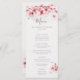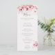 Um moderno e elegante cartão de cardápio floral, com flores de cereja cor-de-rosa penteada e caligrafia moderna em uma textura de papel feita à mão.