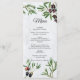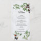 Um belo design com folhas de oliveira rústicas e azeitonas num muro branco de lavagem da ilha grega de estilo mediterrânico. Um cartão de cardápio elegante e casamento vintage perfeito para casamentos com estilo ilha grega, italiano e mediterrânico. Os convites de casamento e outros artigos de papelaria também estão disponíveis.