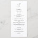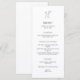 Um cardápio de casamento moderno e elegante com um layout limpo preto e branco e um monograma personalizado no topo. O formato alto 4×9 cria uma apresentação refinada e editorial, enquanto a tipografia minimalista mantém cada prato claro e fácil de ler. Personalize com seus nomes, data e seleções de menu para criar um toque final polido para as mesas da recepção.