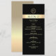 Adicione um toque sofisticado à mesa do seu casamento com este cardápio de luxo preto e dourado, apresentando um monograma moderno no topo e tipografia elegante em todo o material. O fundo preto formal, combinado com uma faixa dourada falsa brilhante, cria um visual sofisticado e atemporal — perfeito para recepções de casamento sofisticadas, glamorosas ou formais. Totalmente personalizável para refletir a data do seu casamento, iniciais e seleções exclusivas de jantar.
