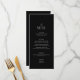 Elevem sua recepção com este Menu Personalizado de Casamento de Moeda Negra Negra, projetado para complementar uma celebração de eterno. Perfeito para um casamento preto ou um casamento preto e branco, esta peça elegante traz sofisticação para a sua mesa. Mostre seus pratos com estilo usando esses cartões de cardápio de casamento, oferecendo inspiração para ideias de cardápio de casamento que combinem com qualquer evento clássico. Um detalhe refinado para casais que buscam menus de casamento inesquecíveis que misturam tradição e elegância moderna.