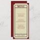 Retrair o menu do stub do filme para um casamento, festa de aniversário ou outro evento. Esquema de cor marrom e burgundy. Personalize-o adicionando sua própria lista de refeições e detalhes do evento.