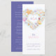Menu janto de casamento da praia branca. Edite este menu de 4 cursos com o seu próprio texto de opção de refeição. Conchas, estilhaços e pinturas de aquarelas de coral têm forma cardíaca com monograma no design central. © Imagem original de aquarela e design por Sarah Trett para www.mylittleedenweddings.com exclusivamente em zazzle.