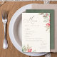 Aprecie as papilas do seu hóspede com o nosso menu de casamento. Contra um fundo bege calcinante, verde-água de inverno, bagas sagradas, cones de pinheiro e quadro foliar elegante e tipografia serif.
