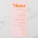 Uma adição vibrante à sua decoração de mesa de casamento. Perfeito para um casamento retrô com um tema de casamento inspirado nos anos 70, ele captura a essência dos estilos de casamento divertidos e ecléticos. inspiração de desenhar de temas de casamento retrógrados e temas de casamento da discoteca, completo com um tema de casamento boho disco e bola de discoteca. Ideal para um casamento groovy ou hippie, este menu também é adequado para casamentos de verão, casamentos de verão tardios e casamentos tropicais. Com sua paleta cor-de-rosa e laranja, é uma escolha de destaque para as ideias de casamento no verão, boho retro casamentos, e até casamentos outono.