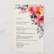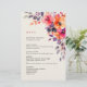 Este maravilhoso menu de casamento apresenta um arranjo floral de cor d'água ousado e artístico que explode com matizes ricos. O canto superior direito apresenta flores pintadas à mão em cor-de-coral vibrante, laranja tangerina, ameixa profunda, roxo de amoreira e marinho da meia-noite, amolecidas por delicadas massas empoeiradas e folhagem de lavanda encharcada. O fundo branco cria um contraste fresco e arejado que deixa as cores brilharem. Perfeito para casamentos outono, festas de vassoura, ou qualquer casal que queira fazer uma declaração colorida e elegante. Totalmente personalizável na ferramenta de design do Zazzle — adicione seu texto, atualize fontes e personalize-o da sua maneira. Para personalização ou outros produtos com este design, fique à vontade para entrar em contato comigo a qualquer momento.