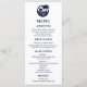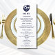 Ponha o tom para sua celebração à beira-mar com este elegante cartão de cardápio costeiro personalizado, com um design gráfico chic de uma palmeira azul marinho, a ascensão solar acima do oceano, e pássaros pacíficos em voo — todos cercados por um círculo de marinho na moda e colocados contra um fundo branco nítido. Perfeito para um casamento de palmeiras ou um casamento de praia, esta design captura a essência do mar e das vibrações tropicais do verão. O layout apresenta uma mistura de tipografia elegante e letra fluente de script de caligrafia, criando um toque refinado, mas relaxado. Uma bela escolha para menus de casamento que complementam qualquer casamento costeiro ou de destino.
