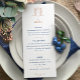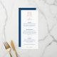 Cor azul escuro profundo e rosa no menu janto de casamento branco. Edite este menu de 3 cursos com o seu próprio texto de opção de refeição. Uma crista monográfica formada, mas moderna, com bagas e folhas entrelaçadas e arrancada com uma design da coroa. © Desenho manual original e design por Sarah Trett para www.mylittleedenweddings.com exclusivamente em zazzle.