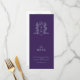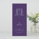 Púrpura escura e cor prateada no menu janto de casamento branco. Edite este menu de 4 cursos com o seu próprio texto de opção de refeição. Uma crista monográfica formada, mas moderna, com bagas e folhas entrelaçadas e arrancada com um design de cor prateada. © Desenho manual original e design por Sarah Trett para www.mylittleedenweddings.com exclusivamente em zazzle.
