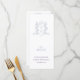 Prata e roxo no menu janto de casamento branco. Edite este menu de 4 cursos com o seu próprio texto de opção de refeição. A crista monográfica formada, mas moderna, com bagas e folhas entrelaçadas, foi arrancada com uma design da coroa cardíaca, cor roxa e cinza prateada num fundo branco. © Desenho manual original e design por Sarah Trett para www.mylittleedenweddings.com exclusivamente em zazzle.