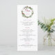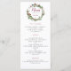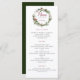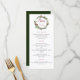 Uma Holly e uma coroa de pinheiros circulam o cardápio para uma festa de casamento festiva. Coloque o palco com o tema colorido de verde-pinho, vermelho-baga-preto e branco-claro-claro. Títulos em vermelho de Natal, revertem para fundo verde-rosa profundo.