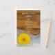 Personalize o bonito Menu de Casamento da Margarida Amarela e das Pérolas do País com os detalhes da refeição que você servirá na sua festa casual, mas elegante, do almoço do chá de panela ou do janto de recepção do casamento, adicionando a salada ou o primeiro curso, o primeiro curso ou o segundo curso e a sobremesa ou o terceiro curso. Este encantador estilo de fazenda rural ou menu de tema rancho apresenta uma fotografia floral acinzentada de uma flor margarida amarela, colar de pérolas e véu bridal branco com um fundo de madeira de celeiro marrom e meteorizado.