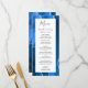 Este elegante e moderno menu de casamento mostra uma cor-d-água azul real sobre o fundo, aparado com brilho de prata. O texto aparece em letras elegantes de cinza de carvão vegetal e fontes de impressão em um retângulo branco. O design de ágata é repetido no reverso.