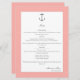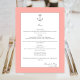 Adicione um toque de sofisticação à sua celebração com este Menu de Casamento de Âncora Náutica Simples Coral, com um motif de âncora clássico e um design litoral elegante. Perfeito para recepções de beachside ou de temas marítimos, este menu mostra as opções de janto de recepção em um layout simples e limpo. Escrita elegante e tipografia moderna destacam lindamente cada curso enquanto complementam o estilo geral do tema do seu casamento costeiro. Um detalhe de na moda que melhora a configuração de mesa e orienta os convidados através da sua experiência de jantar cuidadosamente organizada.