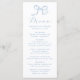 Melhore sua capa de mesa de casamento com este cardápio de arco azul, projetado para misturar elegância com uma vibração leve e romântica. Um arco desenhado à mão fica no topo, com "Menu" na caligrafia graciosa por baixo. Personalize com seus nomes, data do casamento e jante detalhes para se adequar à sua celebração. Este design azul-macio é perfeito para casamentos de jardim, temas costeiros ou inspirados na praia, recepções de primavera ou qualquer evento romântico.