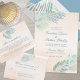 Ramais de palma de aquarelas e uma lavagem arenosa com sotaques azuis de praia. Um design moderno, elegante, mas brilhante.
