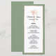 Forneça aos seus hóspedes este design de cardápio de casamento simplesmente elegante, com um roteiro moderno e um texto preto com palmeira artística e borda de cobre rosa de ouro metálico. Personalize-o com seus nomes, data do casamento e opções de menu. Um fundo verde de sábio coordenado está atrás. Entre em contato comigo se precisar de ajuda ou de um pedido personalizado.