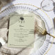 Cardápio de casamento da palmeira. Elegante e simples em design com duas palmeiras, muito espaço para respirar e uma delicada armação. O convite é escrito por tipografia de arte deco e escrita à mão com um monograma clássico de casamento com a noiva e as iniciais do noivo. Por favor, navegue na minha coleção Vintage Palm Wedding para coordenar itens ou envie-me mensagem para adicionar quaisquer peças extras de que necessite.