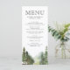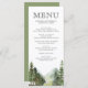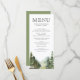 Elegante menu de casamento com belas montanhas e pinheiros com tipografia moderna.