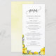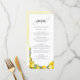 Este belo cardápio de casamento apresenta limões brilhantes com flores lavandas e roteiro elegante. Você pode personalizar o texto no convite para se adequar às suas informações pessoais. A parte traseira apresenta cor d'água amarela ombre.