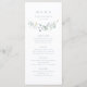 Design de flor silvestre de cor aquática delicada e elegante, com seus próprios detalhes personalizados. Paletas de pastel de amarelo macio, branco esbranquiçado, verde-sábio, azul empoeirado e verde botânico, simples e romântico. Menus de casamento floral de excelente para casamento rústico moderno, casamento de jardim do país e casamento de boho em primavera e verão.