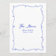 Este maravilhoso menu de casamento ostenta um design brilhante e divertido que apresenta uma letra escrita e uma borda ondulada desenhada à mão em tons impressionantes de cor azul brilhante e rosa quente. A adição perfeita a qualquer celebração de casamento divertida e vibrante, este menu pode ser personalizado para atender às suas preferências pessoais. Pode ajustar facilmente a posição do texto para evitar sobreposições e assegurar uma apresentação sem falhas do menu