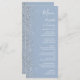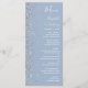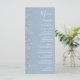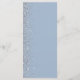 A borda esquerda deste elegante cardápio moderno de casamento apresenta um design de cintilação. O texto personalizável combina manuscrito branco, fontes em copperplate e itálico em um fundo azul empoeirado. O verso apresenta um design brilhante azul empoeirado e prateado.