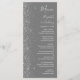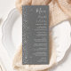 A borda esquerda deste elegante cardápio moderno de casamento apresenta um design de cintilação. O texto personalizável combina a escrita manual de cinzas prateadas, fontes copperplate e itálico em um fundo de cinza. O verso apresenta uma cinza e um design cintilante prateado.