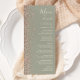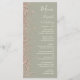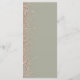 A borda esquerda deste elegante cardápio moderno de casamento apresenta um rosa dourado faux glitter design. O texto personalizável combina a escrita manual do creme, a placa de impressão e as fontes itálicas em um fundo verde sábio. O verso apresenta um design brilhante verde-sábio e rosa.