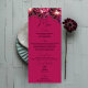 Elegante Menu de Casamento Floral Burgundy. Sombras de uma paleta de cor magenta, roxa e burlada. Queda da composição floral. Apresentando um design moderno com elementos florais abstrato em magenta rica e vibrante, este cartão combina simplicidade com um toque de luxo.