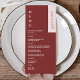 Aumente sua recepção de casamento com o "Menu de Casamento Minimalista da Borgonha", uma peça personalizável perfeita para integrar-se à decoração da mesa. Personalizado para complementar uma variedade de temas, incluindo burgundy, maron e profundamente vermelho, este menu adiciona um toque personalizado à sua celebração. Ideal para casamentos no outono, como outubro, novembro e dezembro, é conveniente às ocasiões em torno de estética escura, romântica ou moderada. Quer você esteja planejando um casamento de Natal ou almejando uma atmosfera humilde de outono, este menu elegante gravatas perfeitamente na sua paleta de casamento burgundy, fazer-o um elemento indispensável do seu dia especial.