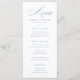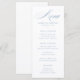 Menu clássico de casamento com elegante caligrafia azul empoeirada.