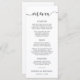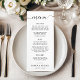 Este cartão de cardápio de casamento fica com um design preto e branco moderno. O script elegante adiciona um toque de estilo de eterno, enquanto os itens de menu são mostrados em um layout claro e fácil de ler. Este cartão de menu exclusivo deixa uma impressão duradoura nos seus convidados.