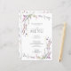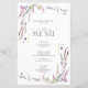 Crie a configuração perfeita de recepção com este design de menu de 5,5 x 8,5" com flores silvestres bonito e delicadas e de tendências. Personalize seus detalhes acentuados com uma bela caligrafia feita à mão moderna em branco suave e preto. Perfeito para, mas não limitado a, aquele casamento no quintal e no jardim. Parte de um conjunto correspondente. Consulte o cheio aqui: https://www.zazzle.com/collections/purple_lilac_lavender_wildflower_wedding-119347990909221303. Copyright Elegant Invites, todos os direitos reservados.