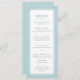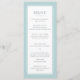 Este elegante menu de casamento vintage moderno apresenta uma borda única em branco contra um fundo pastel de menta. Inspirado pelos vestidos de flapper dos anos 20. A formulação é feita numa cor de cinza correspondente a um fundo branco que facilita a leitura. O fundo é um padrão branco de arte deco em um fundo de menta que complementa totalmente o resto da coleção de casamento "Vintage Beaded". Com este menu de design, você pode ter certeza absoluta que suas deliciosas escolhas de refeições se destacarão de uma maneira incrível. Você pode mudar o texto e as cores para combinar com sua paleta de casamento.