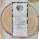 Trate seus convidados com um gosto de elegância com este Menu de Casamento da Noite Lunar, projetado para complementar perfeitamente o seu tema celestial de casamento. Apresentando um céu cheio de nuvens, lua de cheio brilhante e estrelas cintilantes acentuadas por trilhas de estrelas suaves, este menu adiciona um ambiente mágico às suas mesas de recepção de casamento. Suas opções cuidadosamente curadas de janto de recepção são lindamente exibidas em um guião elegante gracioso, em conjunto com a tipografia moderna limpa, criando um layout que é refinado e fácil de ler. Uma adição impressionante às suas configurações de lugar, este cartão de menu traz um toque de encanto aceso a cada curso.