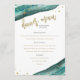 Este elegante e moderno menu de casamento apresenta pedras geodais de cor d'água, com falsa tipografia de ouro e salpicos.