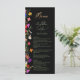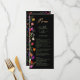 Adicione um toque de elegância boêmica ao seu janto de casamento com este menu de casamento de flores selvagens coloridas do Modern Chic Boho Bright. Apresentando flores botânicas de matizes cor-de-rosa, vermelha, verde e roxa inspiradas em flores silvestres e jardins rústicos de aquarelas, com um verde sutil e uma tipografia moderna de matiz de bô em fundo escuro. Com uma elegante tipografia moderna, perfeita para casamentos de jardim ao ar livre causais.