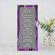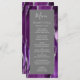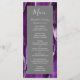 Este elegante e moderno menu de casamento mostra uma cor d'água roxa de fundo moldada com brilho de prata. O texto aparece em letras elegantes de cinza prateada e fontes copperplate em um retângulo de cinza média. O design de ágata é repetido no reverso.