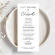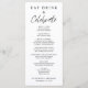 Menu Chic para sua recepção de casamento, festa de noivado, janto de ensaio e outras comemorações com "Coma, Beba e Comemore" em uma mistura de tipografia elegante de serifa e um roteiro moderno, seu menu personalizado em tipografia simples, e seus primeiros nomes e data do evento.