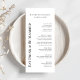 Menu Chic para sua recepção de casamento, festa de noivado, janto de ensaio e outras comemorações com "Coma Bebida & Seja Casado", seus nomes e data do evento em tipografia elegante da serifa. Personalize o seu menu em tipografia simples e limpa.